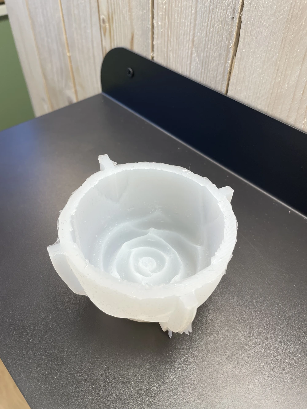 La structure du moule reproduit avec justesse la complexité naturelle de la rose. Les pétales, légèrement superposés, créent un jeu de relief subtil qui confère à chaque pièce une présence visuelle raffinée.